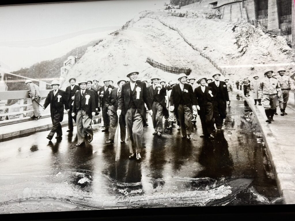 昭和38年6月完成したダムの渡りはじめ