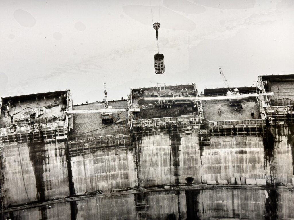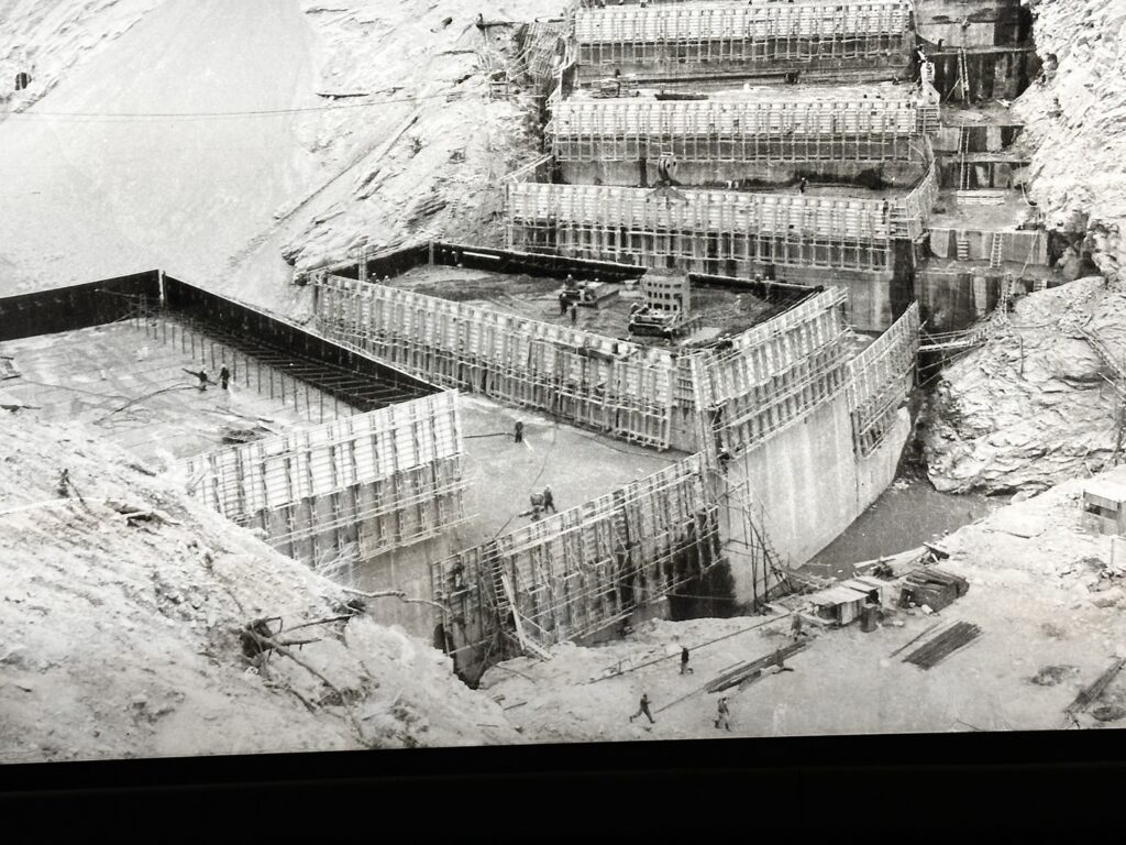 昭和34年10月アーチの形が見え始めた黒部ダム