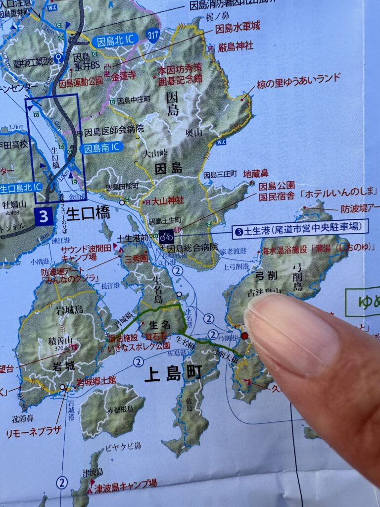 能島を見ながら、必死でペダルをこぐ🚲