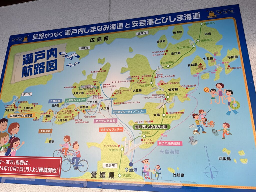宮窪港⚓️に到着するが、遊覧船の気配はなく、地元の方に乗り場を教えてもらう