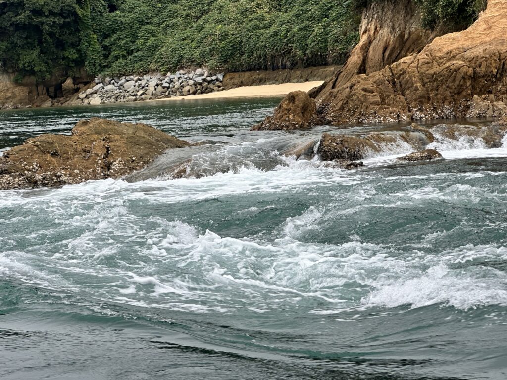 砂浜の先、流れが激しい💦