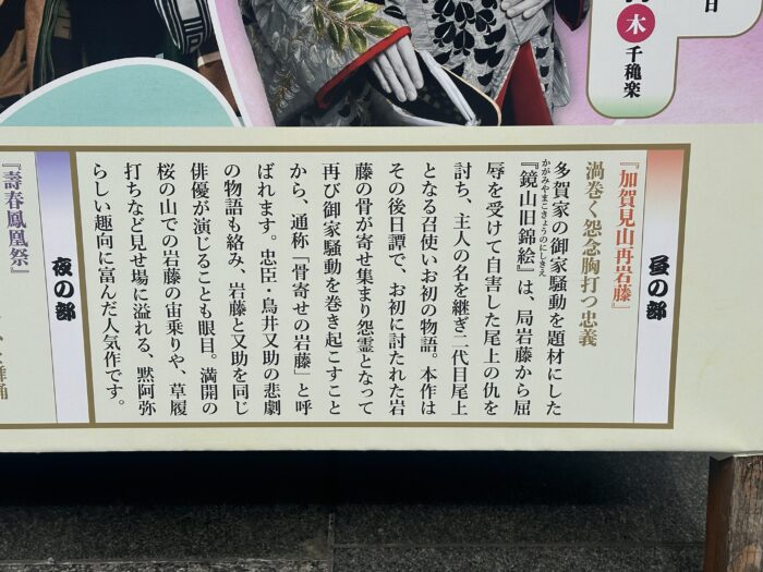 今日の演目「加賀見山再岩藤」(かがみやまごにちのいわふじ)💁♀️
