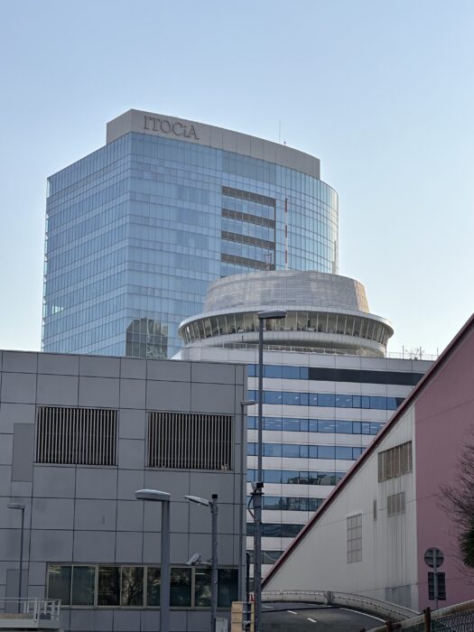 屋上に円形の建物が見える、なんのビルかな?